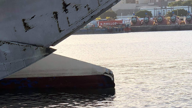 Imagen del patín dañado del Jaume I en Tenerife Fotos. Eloy Padilla Álvarez
